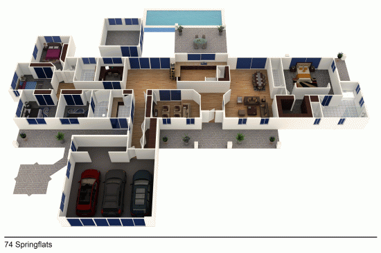 -9 foot ceilings, ducted and zoned air conditioning, and ceiling fans throughout.