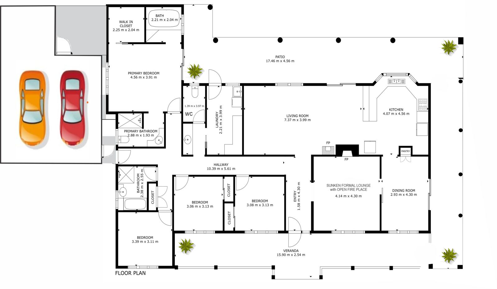 * Formal sunken lounge with an open fireplace with A/c