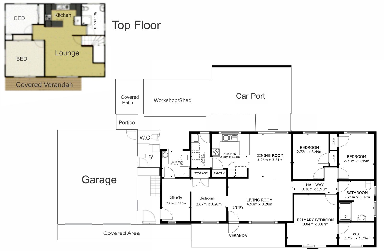 The main home is well-appointed, with a practical layout and modern interiors. It has four great-sized bedrooms, a study, two bathrooms, and two-car accommodation.