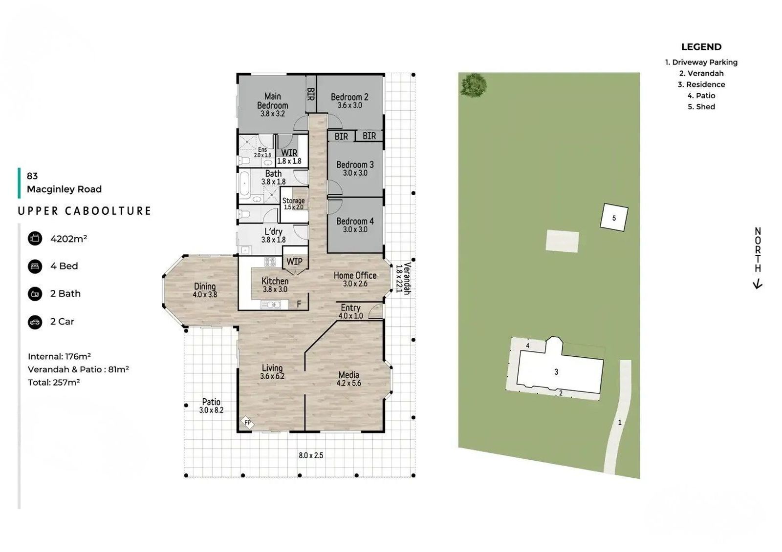 - 2-car shed + extra parking
